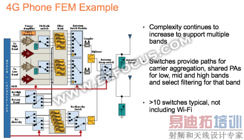 在手机上,2G和3G无线网络的射频功能非常简单。2G只有四个频段,3G有五个频段。但4G有40多个频段。4G不仅融合了2G和3G的频段,而且还搭载了一系列4G频段。