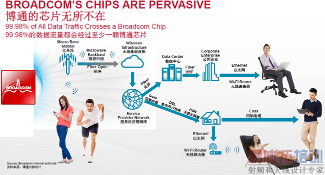博通全球高级副总裁兼大中华区总裁李廷伟博士在“物联网创新主旨演讲”中指出,物联网最大的特点就是物物相连,而目前世界上99.98%的数据流量都会经过至少一颗博通的芯片。