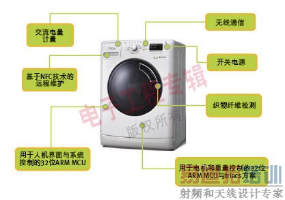 除了织物纤维检测和NFC功能,针对复杂洗涤程序的用户界面和系统管理,这款演示机型还采用了基于ARM Cortex-M0平台的32位微控制器LPC1227。梅润平表示,RFID和NFC技术延伸到家电领域,具有此功能的智能洗衣机可以提供适合不同温度、循环和纤维的多种设置,而所有功能将全部采用一块单板进行控制。