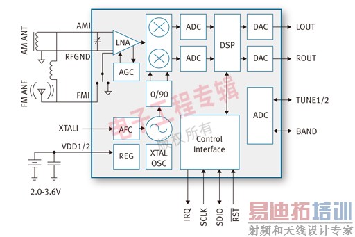 图1:采用数字低中频技术的Si484x架构。