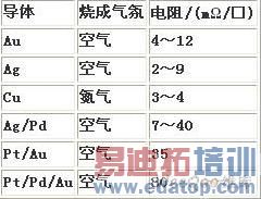 导体浆料丝网印刷形成电路的导体部分。颗粒尺寸、颗粒组织和尺寸分布在决定烧成导体的最终电性能和物理性能上起着重要作用。选择合适的金属化取决于各种因素的组合,如电阻率、可焊性、引线键合力、与系统中其他元件的兼容性、用途(通孔填充、焊接、接地层)、电子迁移、衰减、RF性能、热导率、载流能力、附着力、流变学、抗腐蚀性、外观和成本。表1列举出LTCC技术采用的各种金属化材料。