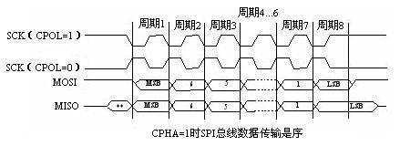 图2示出SPI总线工作的四种方式,其中使用的最为广泛的是SPI0和SPI3方式(实线表示):