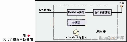 芯片的解调电路如图3所示,从天线接收过来的信号先经过频带选择滤波器滤波,然后用包络检波电路检波,再用施密特触发器对波形进行整形,最后使用1.28 MHz的本地时钟对整形后的数据进行采样并计数每个数据比特对应的1.28 MHz脉冲的个数。
