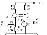 当图1(a)刚接通电源Ec时,由于UF随C充电而增加,直到UF≈1伏时,发光二极管达到饱和,接着三极管也饱和,输出Uo≈Ec。