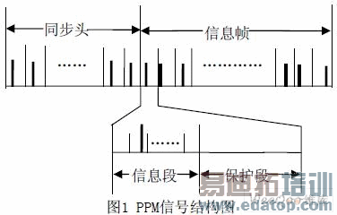 PPM调制采用光脉冲作为载波,信源的信息控制脉冲的位置。PPM信号结构如图1所示。