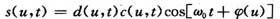 假设A=1,φ0(t)=0。用d(u,t)表示数据源{an}经编码后的数字信号,c(u,t)表示扩频码波形,d(u,t)和c(u,t)都是二进制波形。因此发射系统的输出信号s(u,t)表达式为: