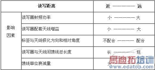 表一 读写距离和几个因素的关系(除读写器和标签本身的性能外)