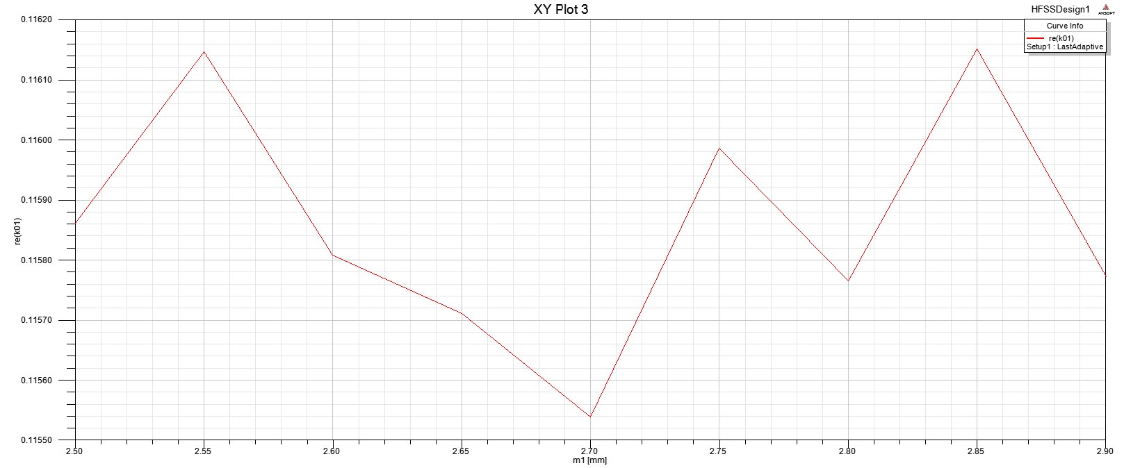 在HFSS里面仿真得出耦合系数,文献里面的耦合系数都是一条线性函数,我得出来是条曲折线,求大神看下 哪里错了? 步骤图如下,变量为两个腔之间开口的大小