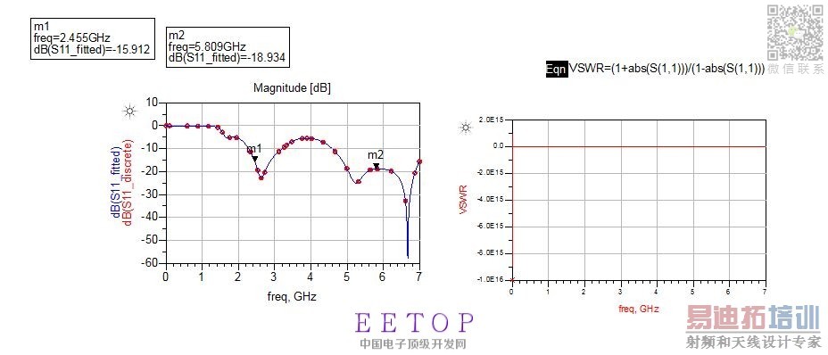 先在ADS中编写了VSWR公式。然后在工具栏拖拽曲线图标至空白处。选择在Plot type中选择equations中VSWR选择Add 后,问什么画出的曲线是直线呢,哪里错误啦QQ图片20160325162619.jpg