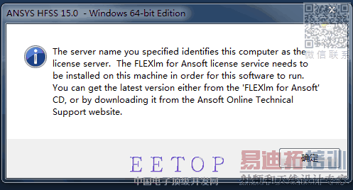 HFSS15打开出现如上错误提示的原因是:电脑中安装其他程序时,定义了LICENSE管理用户变量,只需要将该该变量在环境变量中删掉,再运行软件。