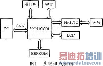 射频卡(非接触IC卡)是最近几年发展起来的一项新技术,与传统的接触式IC卡磁卡相比较,利用射频识别技术(radio frequency identifica-tion)开发的非接触式IC卡成功解决了无源和免接触等难题,是电子器件领域的一大突破。其高度安全保密性以及使用简单等特点,使之在各领域的应用异军突起。本文介绍的非接触射频卡读写器就是基于单片机AT89C51CC01 (笔者应设计需要选择带独立CAN控制器的MCU)与复旦微电子股份有限公司的FM1712嵌入式读写芯片开发的。它能完成对Mifare卡的所有读写及控制操作,并可方便地嵌入到其它的系统(例如:门禁,公交,考勤等)中而成为用户系统的一部分。