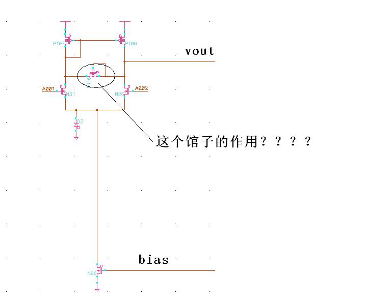 这个管子背后有很深的一个理论,在高压芯片设计中是出于可靠性设计增加的,本人在ST工作,有幸得知这个管子的作用,类似的管子起到释放leakage current(利用寄生diode),减小HCI对comp的输入管造成offset(参见NBTI相关理论)