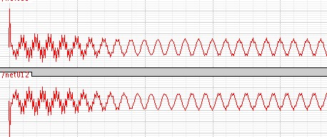 输入为正弦波形,第一级微分肯定为余弦的,即有九十度相移我也是菜鸟,你可以把第二级的尺寸W/L增加一倍,再仿真试试。
