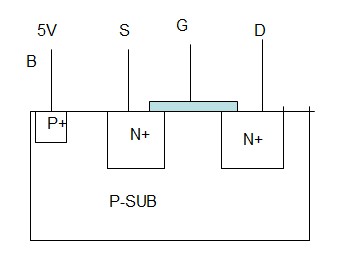 衬底接电源时,你的vgs无法使沟道形成反型层!
