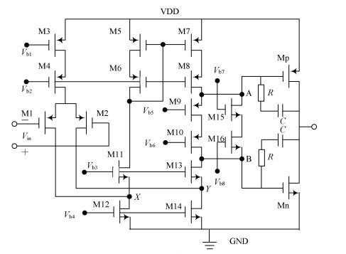 请教:怎么调节M9,M10,M15,M16的尺寸,使得功率管MN,MP在在零差分输入时,他们的栅源电压差略小于各自的阈值电压,急急急急急急急急急!