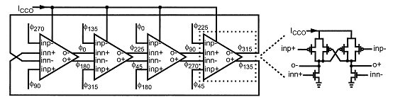 像上面这种差分耦合结构的延时单元的Td怎么分析?小信号分析和大信号分析分别是怎么样的?我把它接成4级的形式,似乎怎么调都不能使它的振荡频率上升到1.3G。大家能帮我分析下吗。用的是0.18的工艺这种结构是一种多通道的延时单元,不仅接收前一级的输入 还接收前前级的收入。 如下图,是一个伊朗女博士的论文里提到的