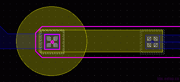 如图,看见版图里有这两种结构,(黄色是N+掺杂,黑色空白处是P衬底,蓝色是met1,粉红色是met2)
