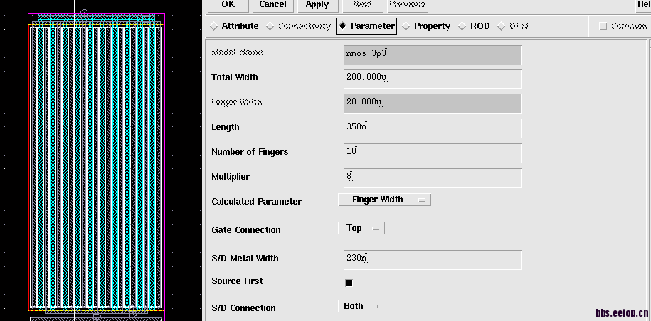 你layout的这个device也就是 20um/0.35um*8
