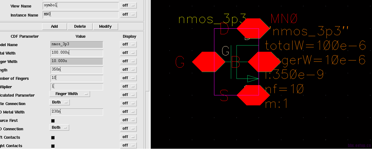 你现在的这个错误的问题是:schematic上的finger值 计算出total w =10*10finger=100