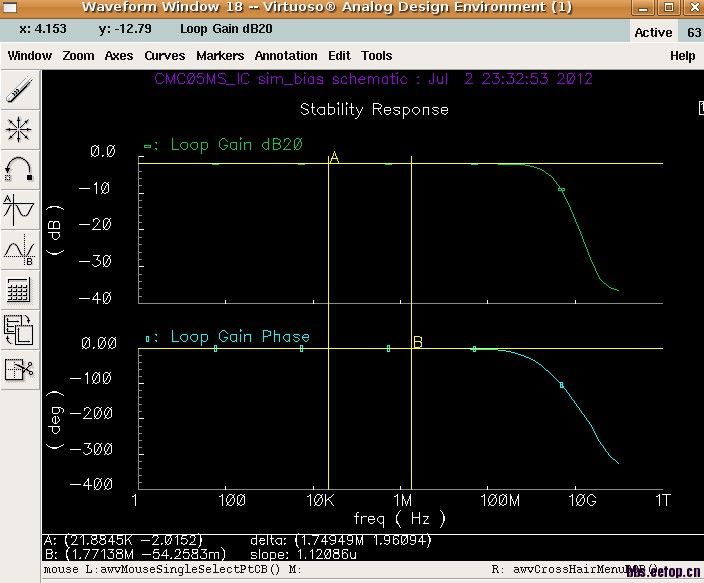 小编的理解是对的,频率高于GBW的讯号对应的loop gain是小于1的,在环路中走一圈回来是衰减而不是增强,所以电路会稳定到一个态,不会震荡,当然,还要瞬态仿真来确切验证,毕竟,ac分析只是建立在某一个operating point上进行的linear modeling,不能保证其他operating points上电路的稳定性。