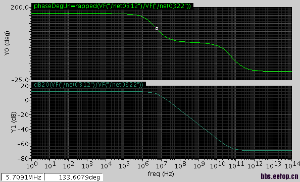 单级共源,电阻负载放大电路的增益及相位裕度图