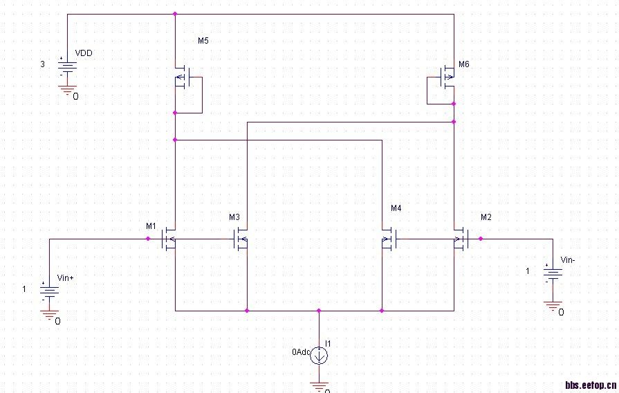 把一对mos管以交叉的形式混到负载中,理想情况下,差模增益为无穷大了,上图是三森的ppt。在下图中,我把一对mos管以交叉的形式混到输入差分对中,可以看出,理想情况下(即电路高度对称),差模增益变为零了,这种电路有什么用啊??