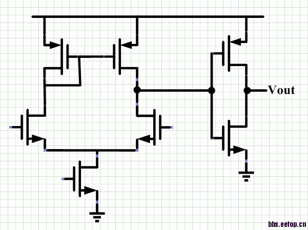 此种结构还是比较常见的,本人最近在做项目的时候就遇到过这样的模块,师兄说这种结构的比较器结构比较简单,但是性能不会很高,而且功耗也很大,因为第一级输出的电压可能处于中间电位,静态的时候,输出级的反相器会存在静态功耗,所以功耗会比较大……本人也是新手,望各位多多指教……