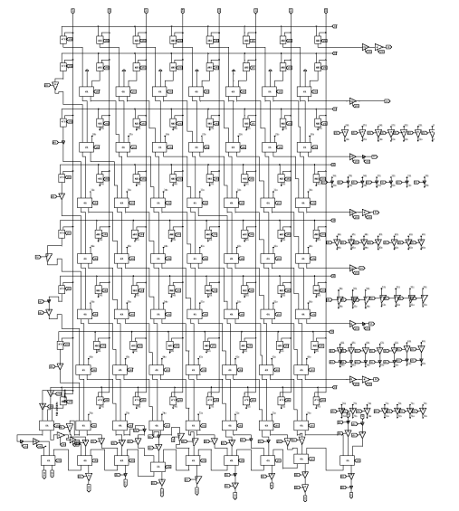 但是我觉得这样的8*8的乘法器,p[0]=a[0]&b[0]在算的时候要比p[8]、p[15]什么的快很多个周期啊?因为加法器、与门都需要一个时钟周期才能给出输出,我觉得。p[15:0]的各位可以同时输出吗?