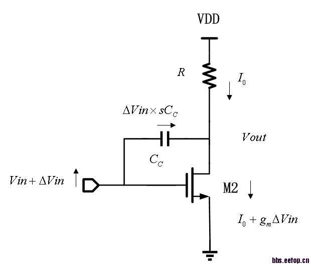 零点就是小信号增益为零的点(是在复频率点上),vin增加后,vout不变,三路电流在节点相加,得出s=gm/Cc