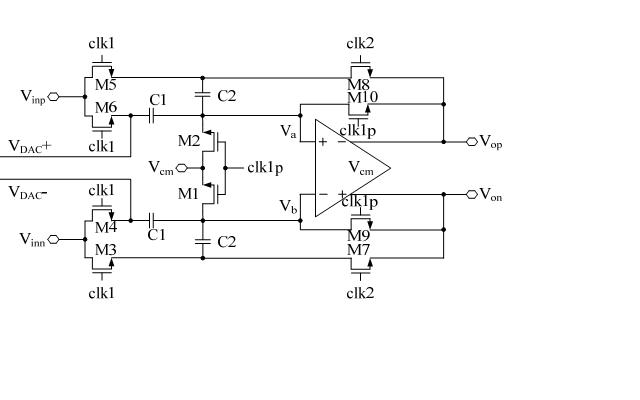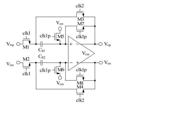 上面电路中,开关M1、M2是boostrap,其他都是CMOS开关。同样的现象,M3~M8这些开关的尺寸由W=8u,L=0.35u变成W=10u,L=0.35u或W=8u,L=0.35u变成W=7u,L=0.35u,仿真结果肯定出现错误。而且开关M7和M8不是连接到放大器的输入端,而是连接到共模电平VCM上,结果也会出现变化。