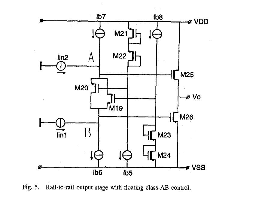 《A Compact Power-Efficient 3 V CMOS Rail-to-Rail Input/Output Operational Amplifier for VLSI Cell Libraries》,在这片论文中提到,输出M25,M26栅极之间的电压差为常数。问题是:M19,M20的gm是否要求相等?