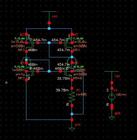 我做了一个与电源无关的的偏置,电路图如下,打算给带隙中的运放做偏置,输入为1.8到5.5V,但电流波动较大,为1uA到1.9uA,电路图如下