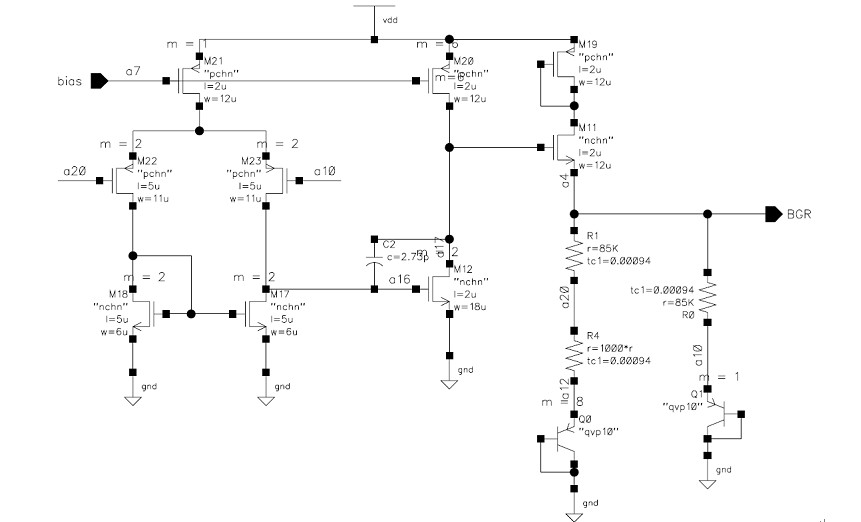 什么意思?是新手 不太懂 根据阻值 以及虚短等 感觉应该得到带隙电压 但是得不到 是不是电路运算放大器部分有问题呢? Vref=Veb2+(R2/R1)Vt ln(R2 Ae1/R3 Ae2) 8.5Kohm 8.5kohm 1kohm 还请指点