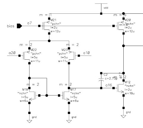 额....我就这么说吧,你就把你的M12管的W/L改为6u/5u M设为4。你再跑你的基准试试,估计就可以工作了。另外你用DC扫电源电压VDD的时候,bias点的电压怎么能固定呢?