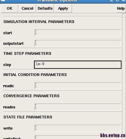 由于整体电路还有一部分数字电路,spectre仿真太慢,所以改用ultrasim,由于仿真tran时,options中的time step parametres为1e-9,所以就没改动,其他都按默认设置仿真,结果是一条直线,真心求教各位应该如何设置ultrasim的仿真步长?在哪里设置?