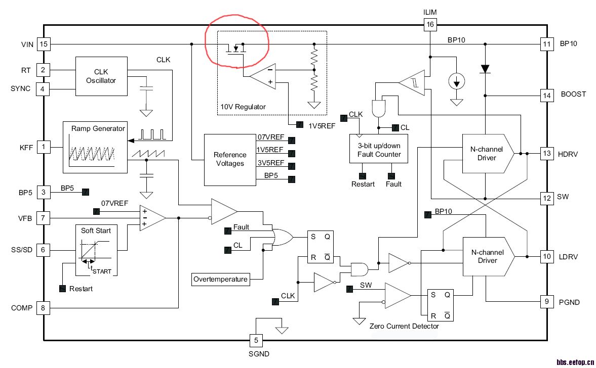这个芯片是替代国外同型号的,这个模块图是别的公司的,从spec看来这个regulator用的PASS管是NMOS。我们改成LDO了。