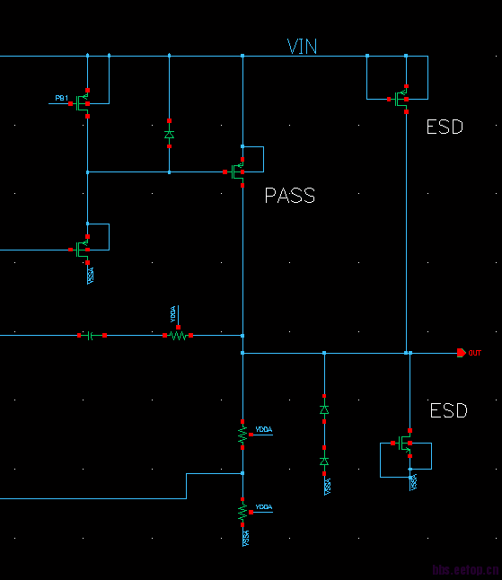2).排除1)的可能性,那就属于PMOS功率管的问题了。其一,考虑Latchup。上电时候功率管对负载充电,当遇到阻性负载时候,过冲比较大。这个过冲电压的抬高是造成Latchup的一个原因之一。建议:1.给AGND串联一个1欧姆电阻,分析瞬态过程,看AGND被抬高多少毫伏,如果超过一个PN结导通电压,请注意大电流的出处!2.给LDO加限流保护,本人也遇到过Ti的一个芯片,内部LDO没有限流保护但是Ti没事,咱们就挂了!3.NMOS做为PASS管,不会造成严重过冲,毕竟Gate电压上电过程需要CP慢慢抬升电压,或者靠EA提供Driver Voltage。而PMOS的Gate Voltage 靠EA控制,EA存在摆率限制,很可能动几下,然后PASS管输出电流就冲几下,接着就挂掉。