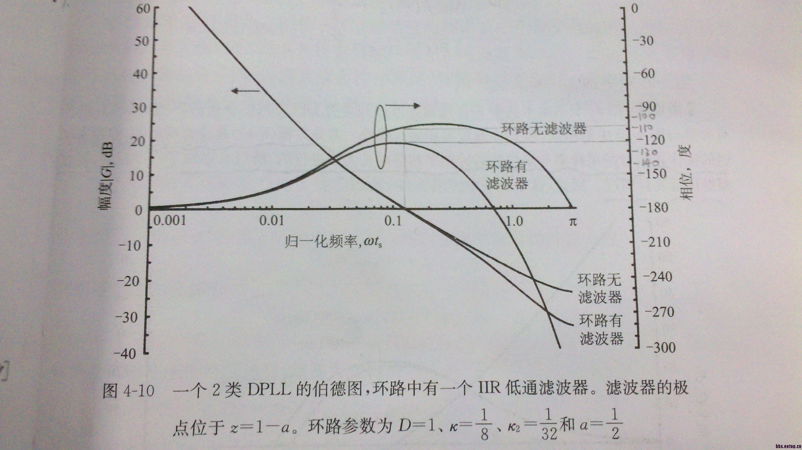4.9节中IIR低通滤波器,带系数a的那个,应该对应于图4-1中的哪部分?还是图4-1的DPLL框图不包含这个滤波器?如果是这样的话,这个低通滤波器应该加在环路的什么位置,才能得到图4-10的伯德图?