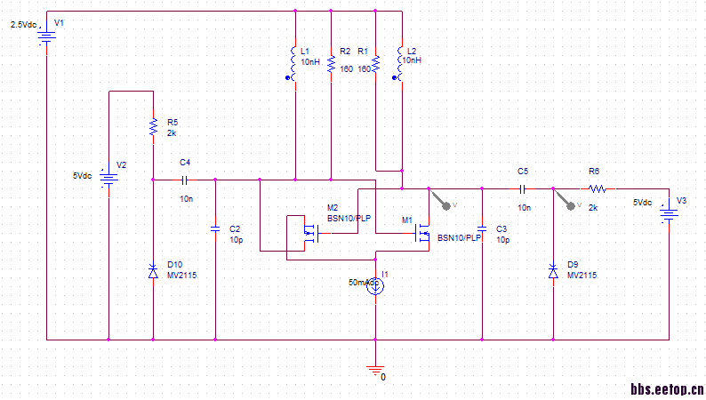小弟是新手,最近在用pspice仿真一个LC负阻型压控振荡器,线路如图