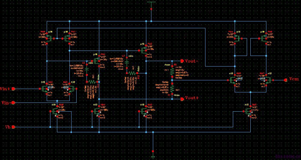 两级全差分运放结构如图,闭环仿真时输入端加了电阻,且输出端加了反馈电阻到输入端,前仿结果没什么问题,后仿时输出电压跳变到0是什么情况?求大虾指点!仿真时加入差分正弦信号,前仿时输出也是正弦信号,但后仿时输出就跳变到0V左右了,后仿结果如图