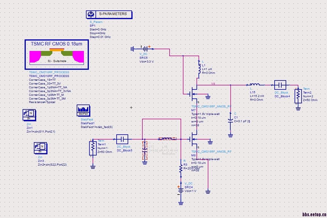 各位大侠 我在做一个功放 输出端暂时按照共轭匹配 但是做输入端的时候 发现输入阻抗实部竟然是负的 放在cadence的标准库中求 同样的结果 求各位大侠指点啊 内牛满面