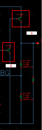 图中1应该为横向pnp管,2为纵向pnp管把?。感觉你的环路是正反馈。