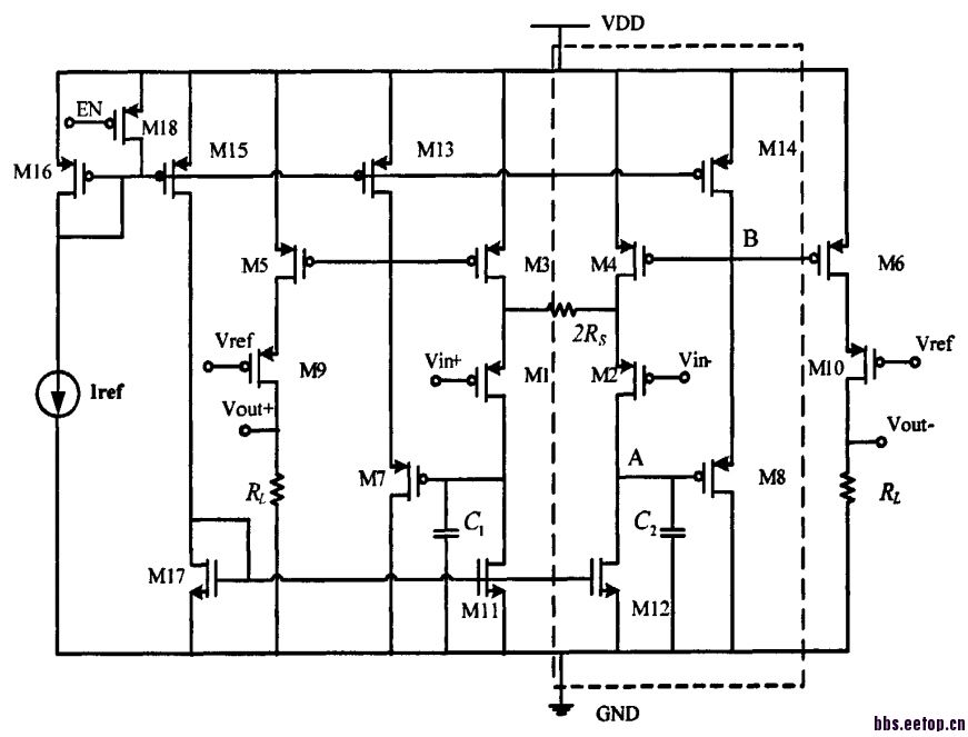 这个电路我感觉和我们典型的控制增益的运放还不大一样(SANSEN书P265那种),M3 M4的失配会带来较大的误差,所有失调产生的电流都流过RS会产生很大的失调电压吧?个人理解,欢迎讨论