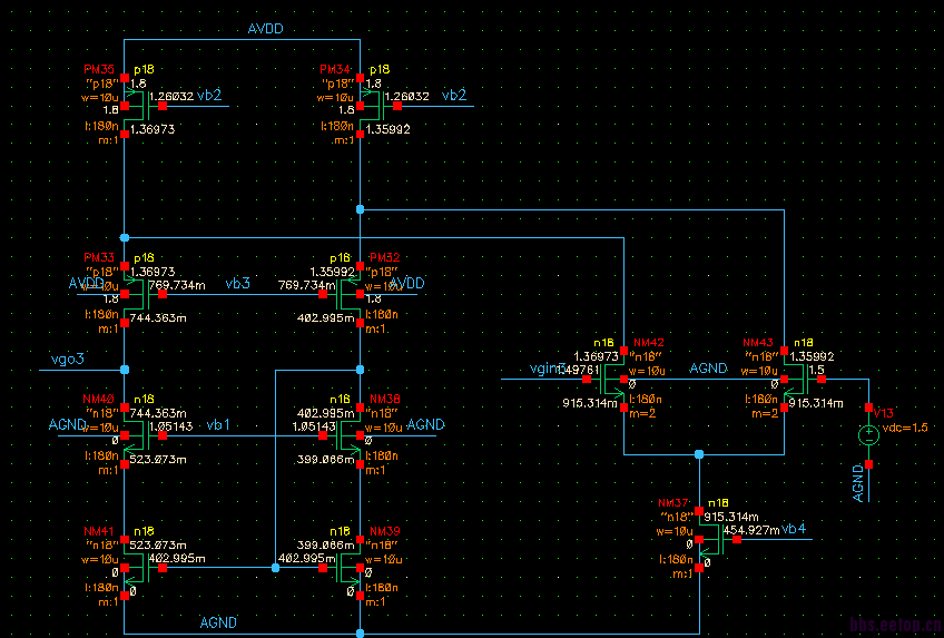 看看我这个电路,工艺是smic.18的,电源电压降到了1.8V.