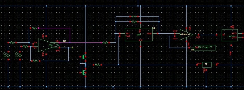 做了一个D类功率放大器,现在在做前端仿真,但是OTA的输出波形却出现了截止失真,电源电压3.3V,调整的OTA的输出直流电平1.65V.但是输出的正弦波在1.6V左右却降不下去,出现了截至失真,把OTA的输出直流电平调整到2.2V左右,波形还是在在1.6V左右失真,后面运放的直流偏置也是1.65V,输出直流电平1.65V,已经问了不少同学,有的说是OTA原因,有的说是外部电路问题,但是都不会调,求助大神,现在要怎么调整电路,是要从OTA或是后面的AMP着说,还是电路的问题,谢谢大神了。
