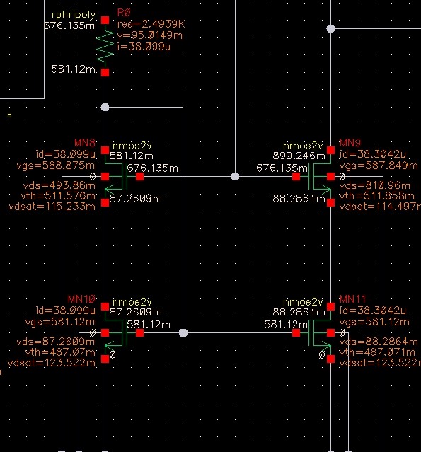 MN11的漏端电压由MN9的栅端电压控制,根据你电流,你把电阻R0增大一倍,M11的漏端电位就会上升80mV左右,Vds11就有160mV左右,Vds就大于Vdsat了