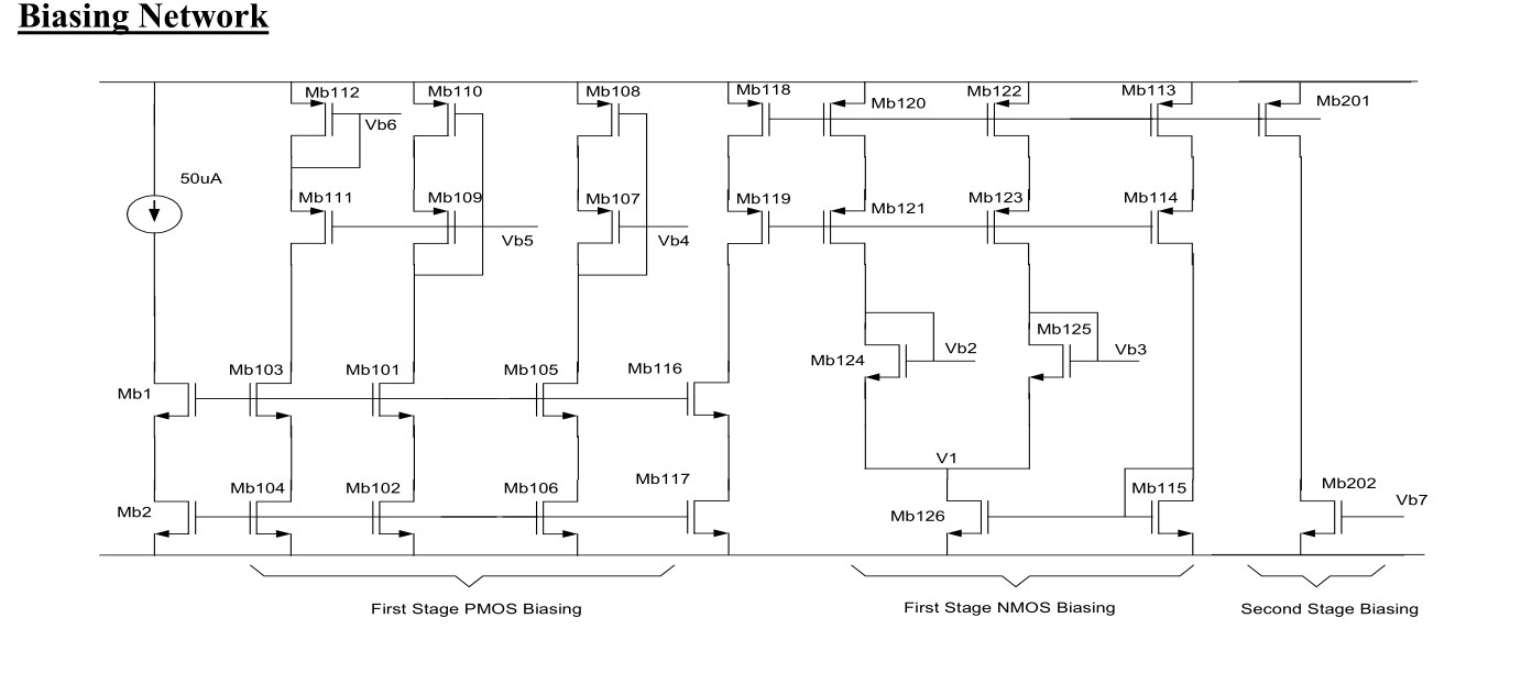 我刚刚尝试了你说的MP4=MN3=30uA,这样最下面的两个管子是可以处于饱和区,但是,MP4,MP5,MP3三条支路的电流分别是36、36、30uA,加起来超过了我的功耗,我要求的功耗P<0.16mW,还有我的增益一直都是50db附近,我增大MP4,MP5,MP3的W,以及将MP7,MP6的管子W/L增大一倍,还是没有什么效果,或者我增大MP4,MP5的L,其还是不能达到我所要的75dB,另外,很多人说我的偏置电路不好,最好不要采用这种,你能推荐一种比较好的偏置电路吗。最近在读一片论文的时候看到下图所示的偏置电路,(如上图)但是看不懂为什么。我的折叠共源共栅电路还有很多问题啊,都不知道怎么改进了。为什么要用这种自偏置?在运放实际工作会进入线性区,你仿个瞬态就知道