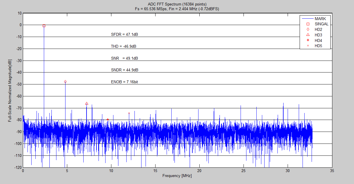 最近测了一款ADI的12bit/65M模数转换器,小弟测试结果如下:
