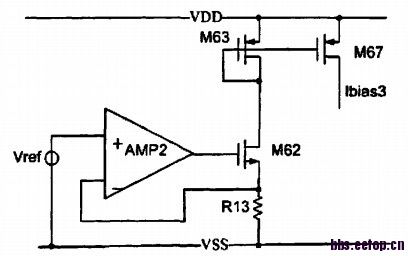 注意M62管的GATE电压,此处也是运放的输出电压