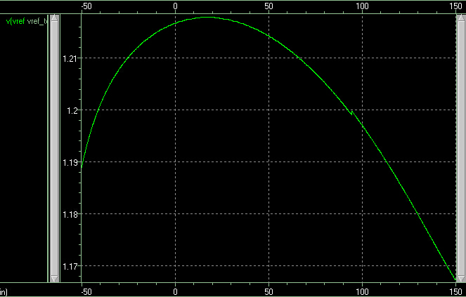一个那种带运放的带隙基准的曲率很小,也就是在零温点两边随温度变化很大,感觉这基准很不好,波形如下